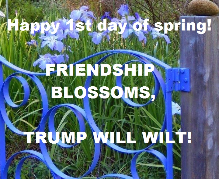 Can you share this with your friends, please? It's an event on facebook, too. Attached are photos in both English and Spanish. Hope you will join us, even if it's just for 15 minutes! Thanks, Barbara Please join us in front of Teatro Juarez to celebrate the first day of spring and Benito Juarez's birthday on Monday, March 20th, 4:30-5:30 p.m. On the facebook event page,FRIENDSHIP BLOSSOMS, TRUMP WILL WILT! there are some suggestions for signs you can make if you wish. If you can, bring flowers to hand out. Please share and invite all your friends. There's a photo and explanation in Spanish on the event page which you can share with your Mexican friends. This is a follow-up to the AMISTAD SI, MURO NO event of February 14th. Foreigners should NOT carry signs against the Mexican government. This is a PEACEFUL event, no arguing politics with the public. Por favor, únase a nosotros frente al Teatro Juárez para celebrar el primer día de la primavera y el cumpleaños de Benito Juárez, lunes, 20 de marzo, 4:30-5:30 p.m. En la página del evento en facebook, FRIENDSHIP BLOSSOMS, TRUMP WILL WILT! hay algunas sugerencias para los carteles que puede hacer si lo desea. Si puedes, trae flores para regalar. Por favor, comparta e invite a todos sus amigos. Este es un seguimiento del evento AMISTAD SI, MURO NO del 14 de febrero. Los extranjeros NO deben llevar carteles contra el gobierno mexicano. Este es un evento PACÍFICO, no discutir la política con el público. |