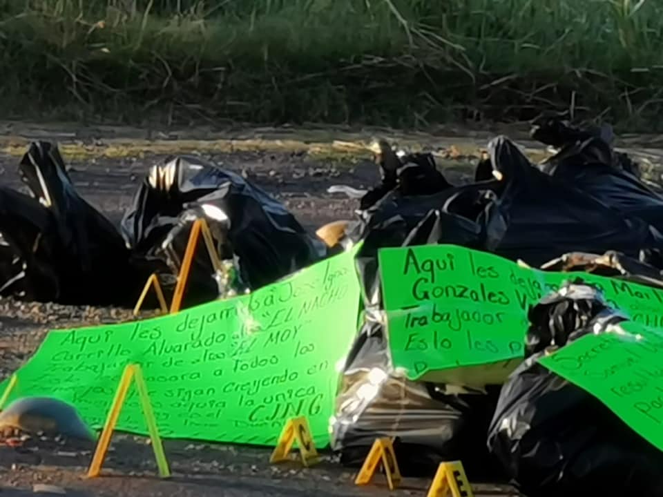 I'm not well informed about cartels, local or national, but the sign on one of the bags, posted on TV Guanajuato Canal 8's Facebook page, is signed by Grupo Elite. The other is signed CJNG. Of course it's possible that any person or cartel can write and sign another person's/group's name to deflect the blame.
