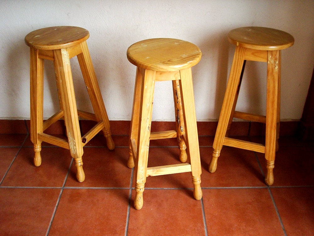 Handmade wooden barstools. Set of four.