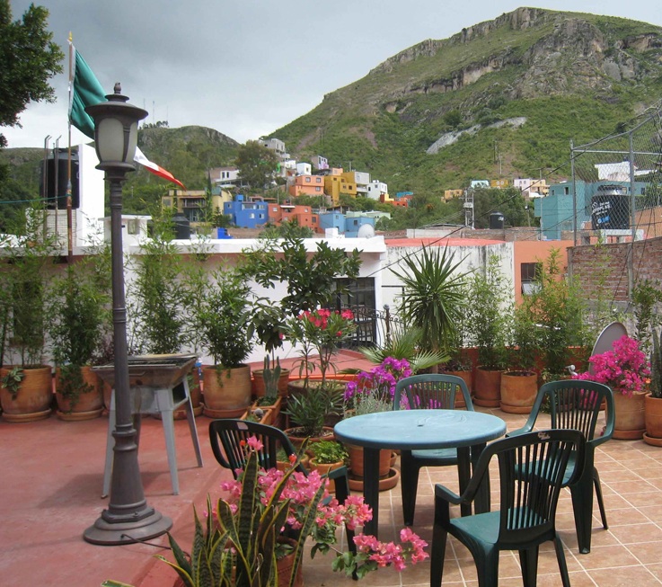 The house is turnkey ready with all furniture and fittings; this includes all the kitchen appliances and utensils. There are two bedrooms downstairs with built-in wardrobes and an upstairs room that can be used as a third bedroom, study or second sitting room. In addition to the bedrooms the main body of the house consists of a sitting room, a dining room and a vestibule. There is a full and a half bathroom. The once bare roof area is now a flourishing terrace with views over the La Bufa range of hills. The sixty-odd potted plants are included with the property. The servicio is also to be found on the roof behind secure doors. The land area is 97.36 square metres whilst the house is 110 square metres. There is a common patio area on two sides of the residence. The asking price is 1.8 million pesos. If your are interested you can discuss it with us or Jame Pyle who is handling the sale through Guanajuato Land and Homes. He can be contacted on his mobile (473) 108-3584 or jpism@hotmail.com Looking forward to hearing from you, David Rogers |